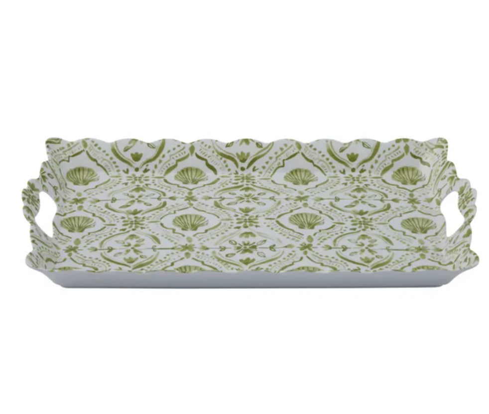 This Costiera Melamine tray combines stylish scalloped edging with olive and white tones with durable construction, making it ideal for outdoor dining. Measuring 49 x 30cm, it’s perfectly sized and has handles for carrying or serving the accompanying range.