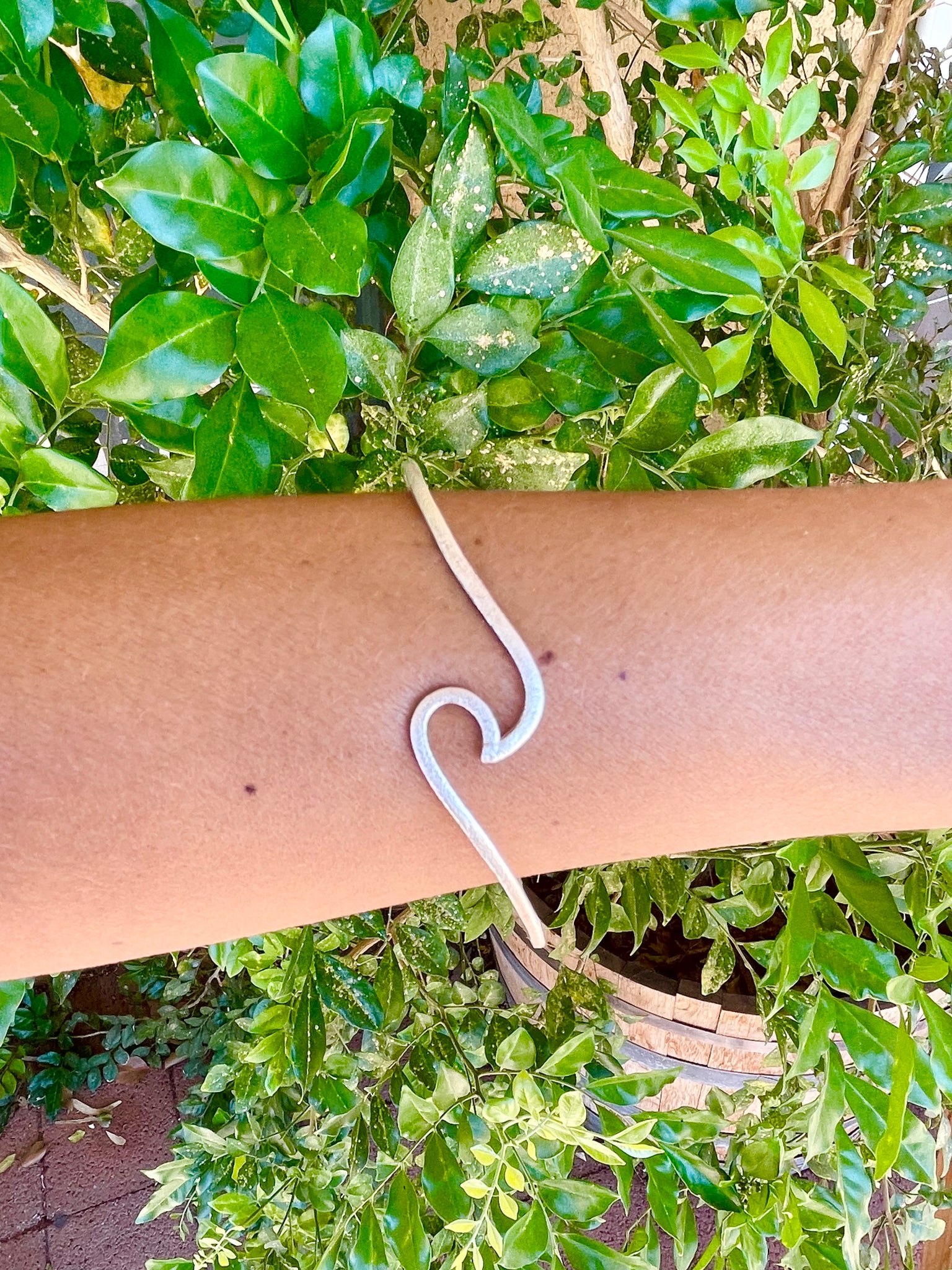 Crafted from sterling silver, the Kailani Wave Bangle is a part of a collection inspired by ocean waves. This open bangle comes in one size and is perfect for showcasing your love for the sea.