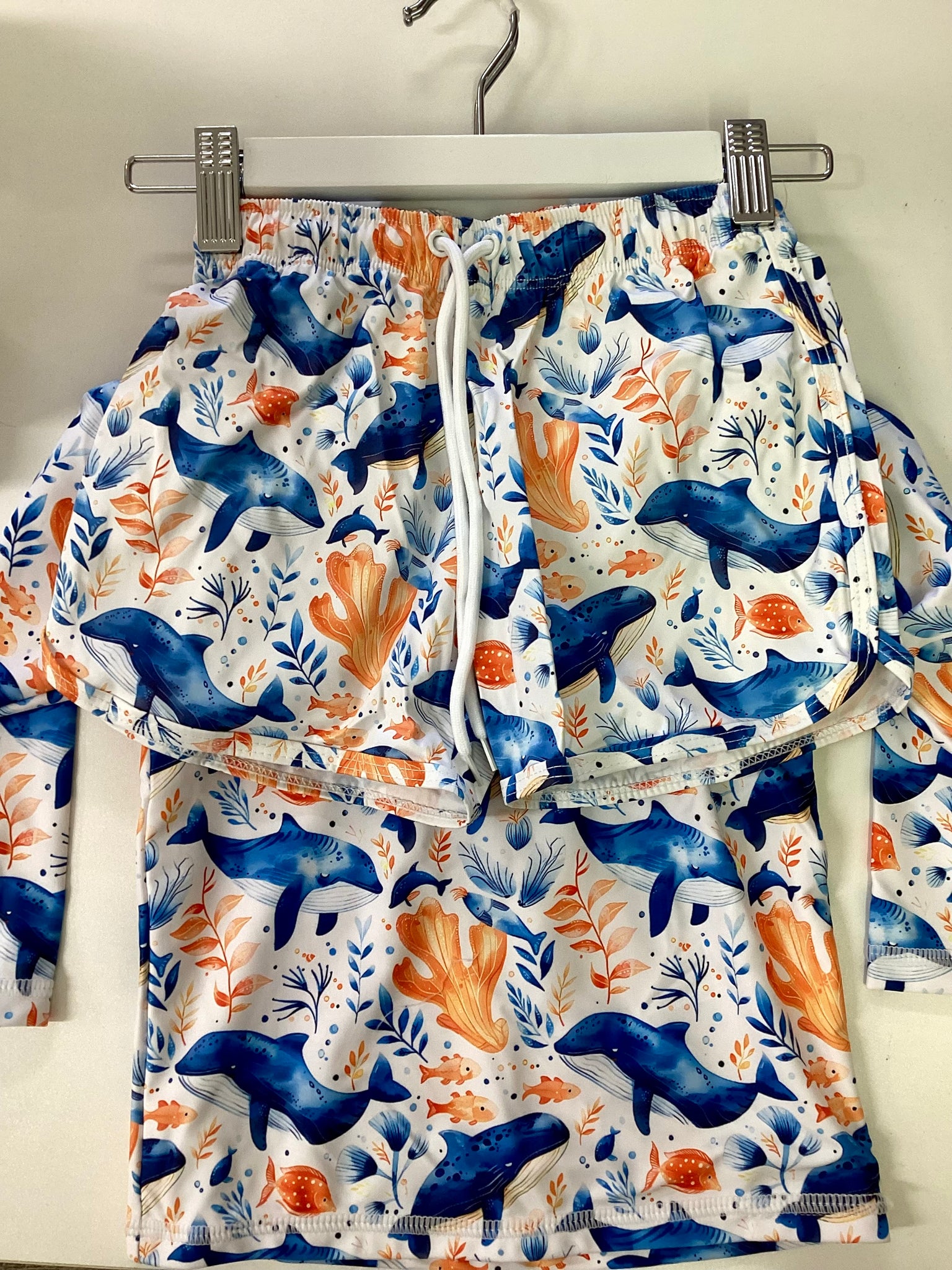 A true Symphony of the Sea, with playful ocean friends frolicking around.
