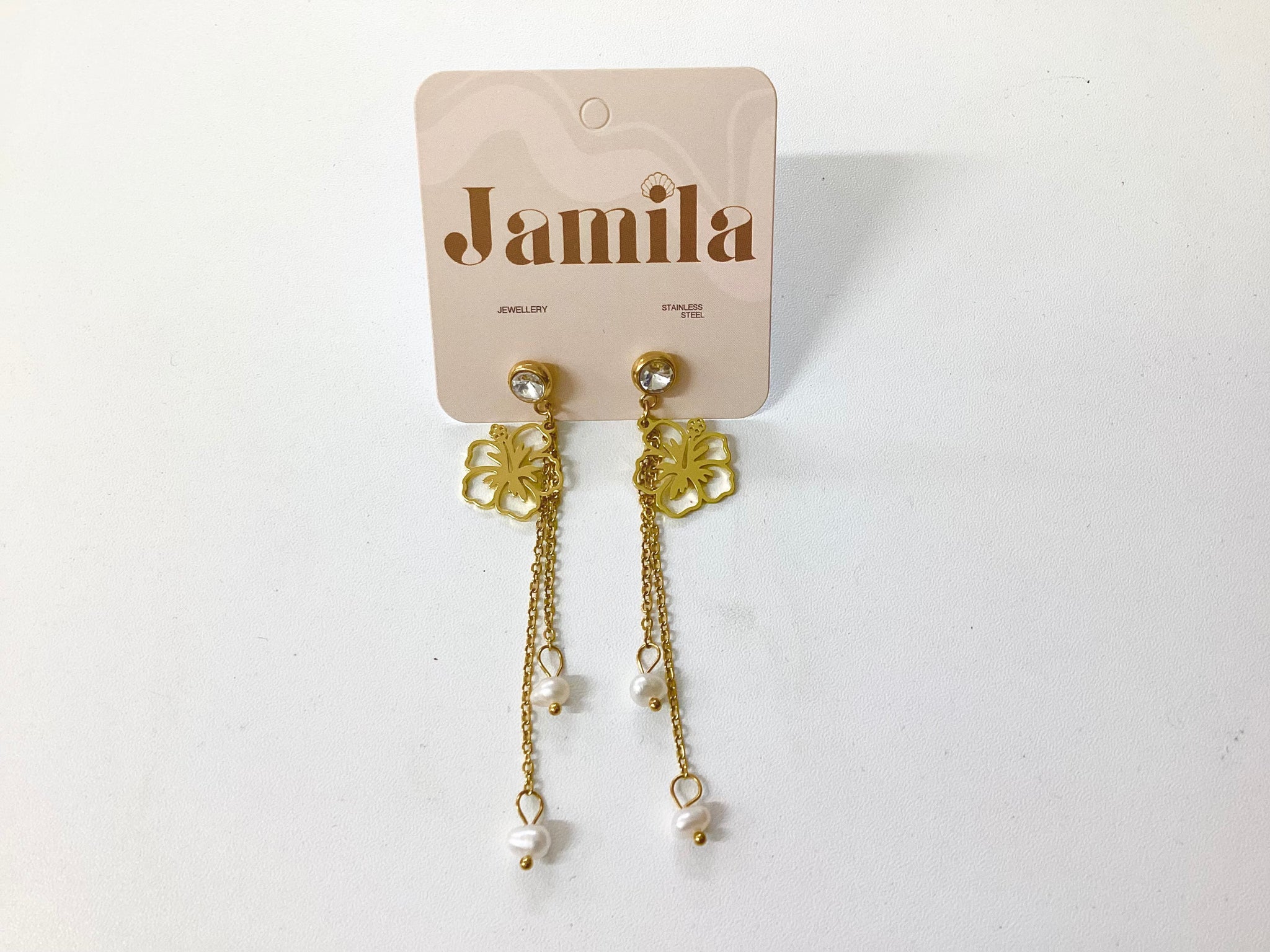 Add some glam to your wardrobe with our Baltimore Collection! These playful stainless steel gold plated earrings come in two options - huggies or chain with pearls - perfect for any occasion. Plus, they're water safe for worry-free wear. Upgrade your style game today!